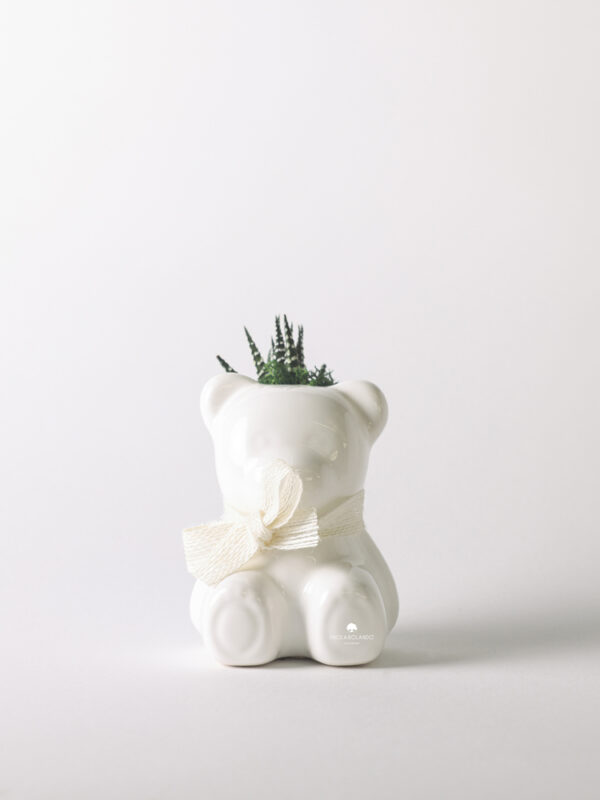 Pianta grassa succulent vera in orsetto di ceramica Made in Italy con muschio vero stabilizzato con astuccio da confezione: l’oggetto di ceramica è progettato, realizzato e smaltato interamente a mano da maestri artigiani italiani – dimensioni: 9x8x15 cm (l’altezza può variare in base alla pianta) – 100% ceramica Made in Italy – *le piantine grasse sono vere e assortite – la box da confezione è realizzata in carta e rifinita interamente a mano – dimensioni box: 12x12x15 cm.