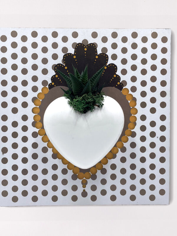 Pianta grassa succulent vera in cuore di ceramica Made in Italy con muschio vero stabilizzato su quadro mdf decorato con astuccio da confezione: l’oggetto di ceramica è progettato, realizzato e smaltato interamente a mano da maestri artigiani italiani – dimensioni: 28×27 cm – 100% ceramica Made in Italy – *le piantine grasse sono vere e assortite – la box da confezione è realizzata in carta e rifinita interamente a mano – dimensini box: 42x8x32 cm – le varianti colore fanno riferimento alla grafica dello sfondo *colore cuore assortito.