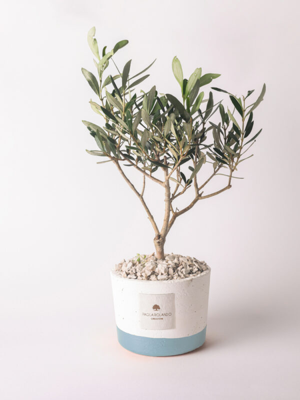 Olivo in vaso bianco e fascia colorata: questo articolo è realizzato e decorato interamente a mano da maestri artigiani – dimensioni: d. 14 cm h. 35 cm (l’altezza può variare in base alla pianta) – 100% cementino – box o shopper da confezione abbinabile – dimensioni box: 15x15x12 cm – dimensioni shopper: 22x10x22 cm.