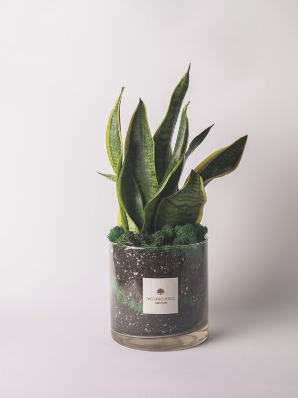 Sansevieria in vaso cilindro di vetro con muschio vero stabilizzato e terreno: questo articolo è realizzato interamente a mano da maestri artigiani italiani – dimensioni: d. 14 cm h. 35 cm (l’altezza può variare in base alla pianta) – box o shopper da confezione abbinabile – dimensioni box: 15x15x12 cm – dimensioni shopper: 22x10x22 cm.