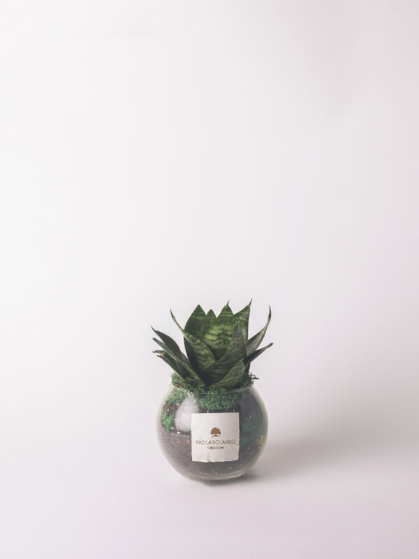 Sansevieria nana in vaso sfera di vetro con muschio vero stabilizzato e terreno: questo articolo è realizzato interamente a mano da maestri artigiani italiani – dimensioni: d. 12 cm h. 20 cm (l’altezza può variare in base alla pianta) – box o shopper da confezione abbinabile – dimensioni box: 15x15x12 cm – dimensioni shopper: 22x10x22 cm.