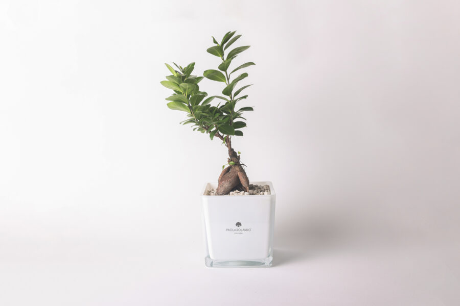 Bonsai ficus ginseng in cubo vetro: questo articolo è realizzato e smaltato interamente a mano da maestri artigiani italiani – dimensioni: 15x15x35 cm (l’altezza può variare in base alla pianta) – box o shopper da confezione abbinabile – dimensioni box: 15x15x12 cm – dimensioni shopper: 22x10x22 cm.