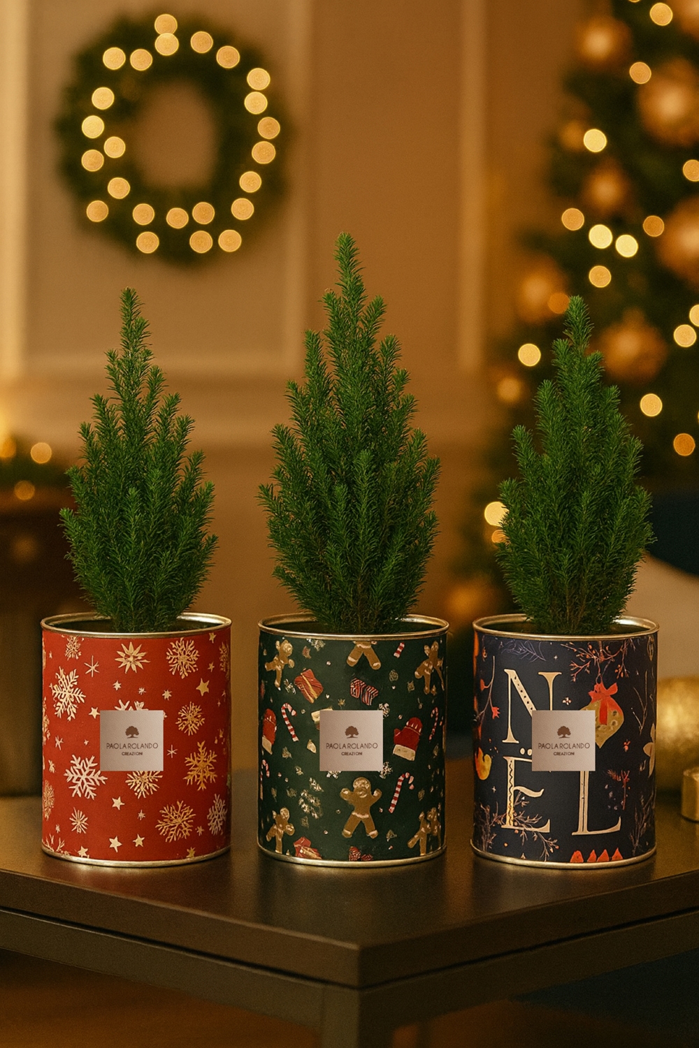 Pinetto Ellwoodii v.10 in vaso di latta decorato con carta Christamas 2025: l’oggetto è decorato e rifinito interamente a mano da maestri artigiani italiani – dimensioni: h.30 cm d.10 cm (l’altezza può variare in base alla pianta) – shopper da confezione abbinabile realizzata in carta e rifinita interamente a mano – dimensioni shopper: 22x10x22 cm.